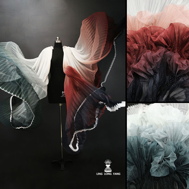 人鱼姬褶皱纱布料服装设计创意造型百褶压皱背景拍照舞台装饰面料