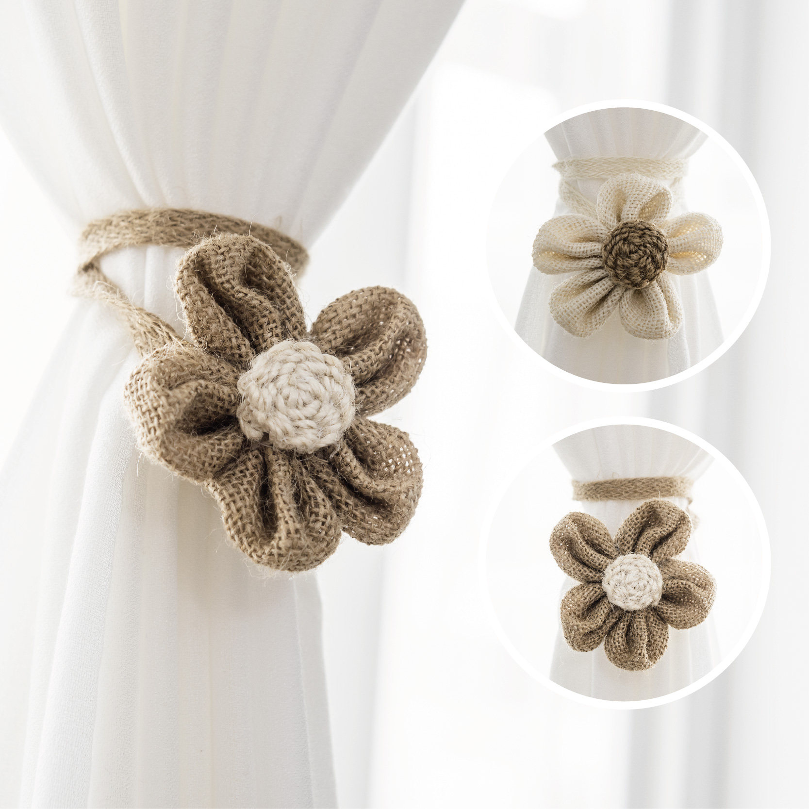 窗帘花朵绑绳一对装收纳绳窗帘配件编织田园风亚麻窗帘扣可爱装饰热门设计联盟服务商