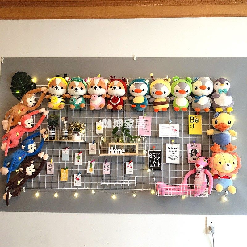 ins网红毛绒玩具收纳神器床头装饰背景放娃娃的架子铁网格照片墙热门设计联盟服务商