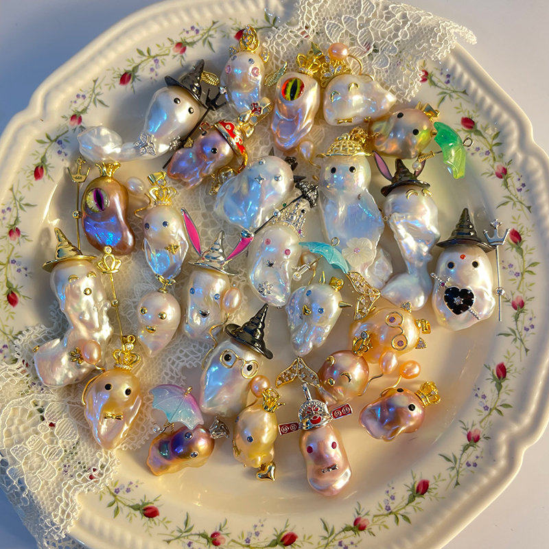 原创设计天然淡水巴洛克异形珍珠吊坠阿飘小怪兽精灵挂坠镶s925银热门设计联盟服务商