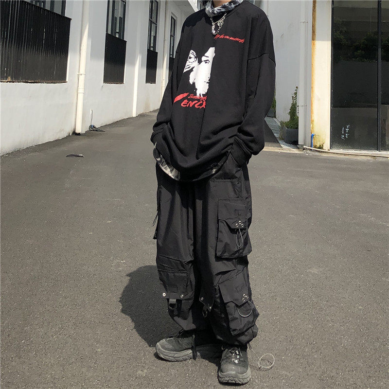 HC 暗黑高街机能风工装多口袋抽绳街舞嘻哈直筒阔腿束脚裤子男女热门设计联盟服务商