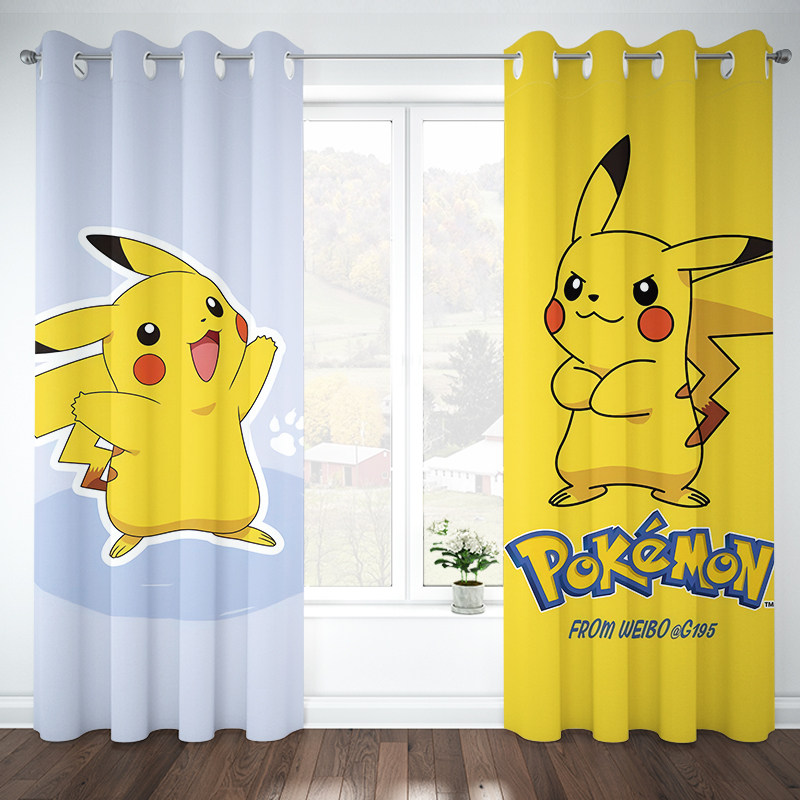卡通皮卡丘可爱儿童房遮光窗帘男孩女孩卧室客厅飘窗落地窗遮阳帘热门设计联盟服务商
