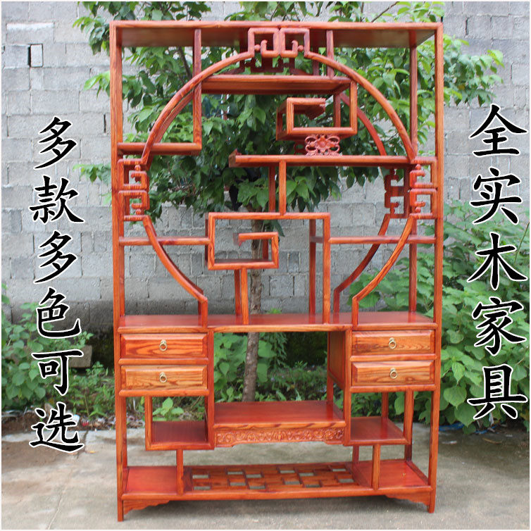 现代简约博古架实木新中式展示柜多宝阁置物架榆木仿古茶具古董架热门设计联盟服务商