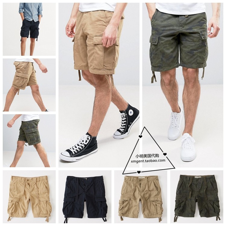 清仓美国正品abercrombie fitch夏季男AF做旧多口袋沙滩工装短裤热门设计联盟服务商