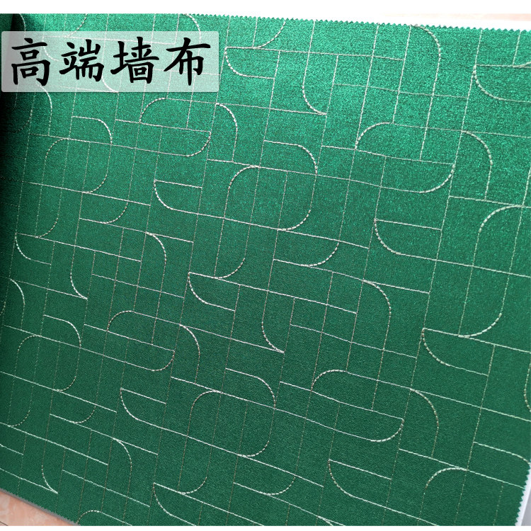 凹凸刺绣墙布简欧无缝新中式窗格回字纹客厅影视玄关背景墨绿深绿热门设计联盟服务商