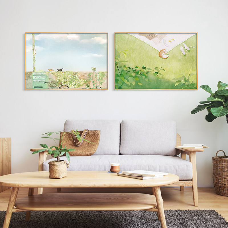 现代简约墙壁画客厅沙发背景装饰画田园风景小清新艺术挂画猫高端热门设计联盟服务商