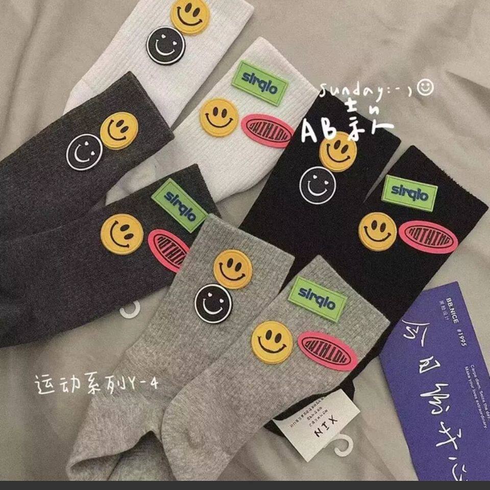 网红款笑脸袜子 冬季布艺立体贴图可爱百搭长筒女棉袜四色堆堆袜热门设计联盟服务商