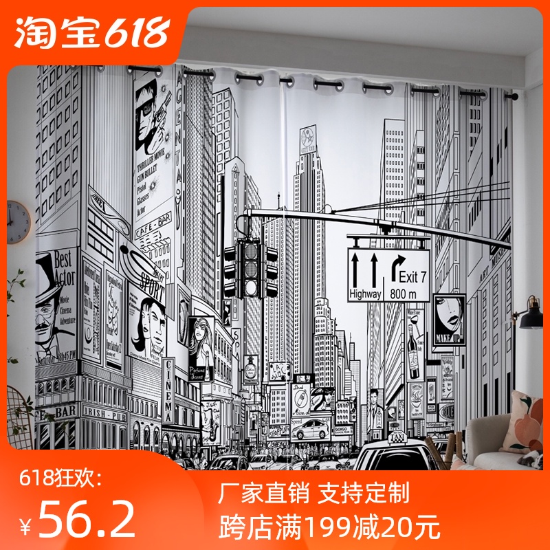 城市风景窗帘建筑街景工业风个性创意卧室客厅北欧ins定制遮光布热门设计联盟服务商