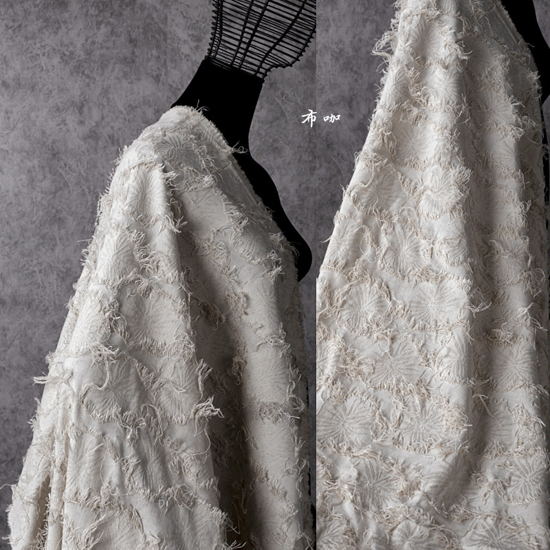 棉麻手工剪花布65%棉35%亚麻水洗做旧肌理米白黑色毕业设计师面料热门设计联盟服务商