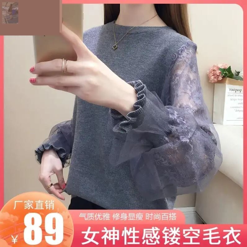 动感歌弟洋气女士毛衣蕾丝袖圆领针织衫宽松上衣梵笼服饰女装热门设计联盟服务商