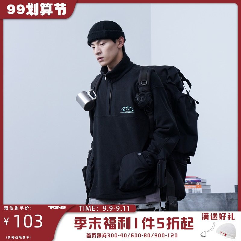 TGNS潮牌摇粒绒大口袋拼接夹克男春季街头半拉链套头宽松工装外套热门设计联盟服务商