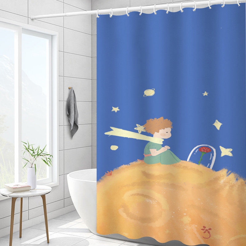卡通动画小王子浴帘套装浴室免打孔儿童帘淋浴隔断帘卫生间遮挡帘热门设计联盟服务商