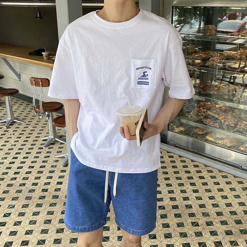 田尼克 日系简约设计感小口袋短袖T恤男夏季薄款休闲宽松圆领内搭热门设计联盟服务商