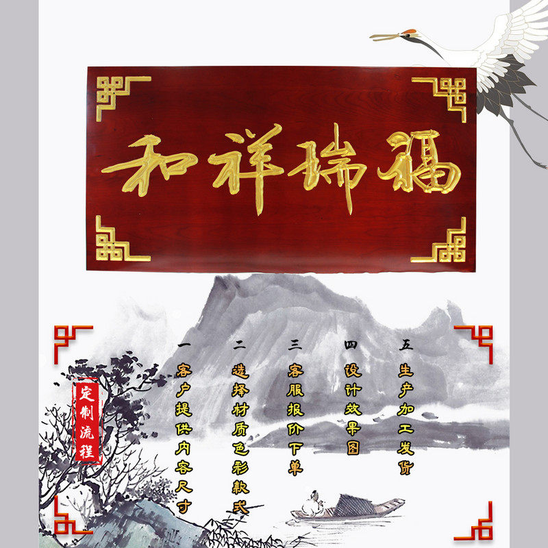 桃木实木牌匾定做店铺门头招牌开业仿古天官赐福定制设计刻字木雕热门设计联盟服务商