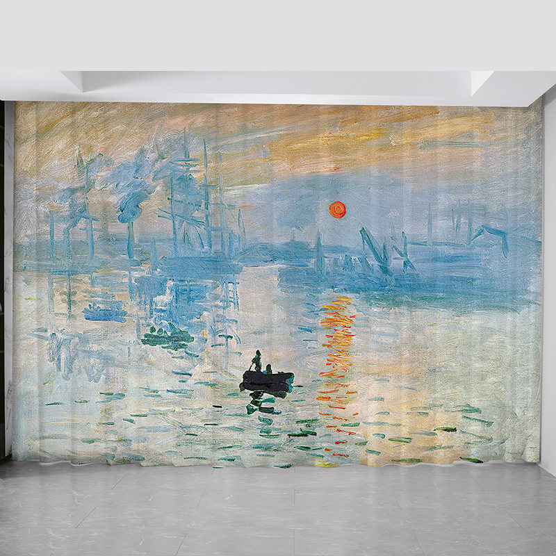 莫奈油画艺术北欧简约客厅卧室飘窗书房阳台日出印象派遮光窗帘布热门设计联盟服务商