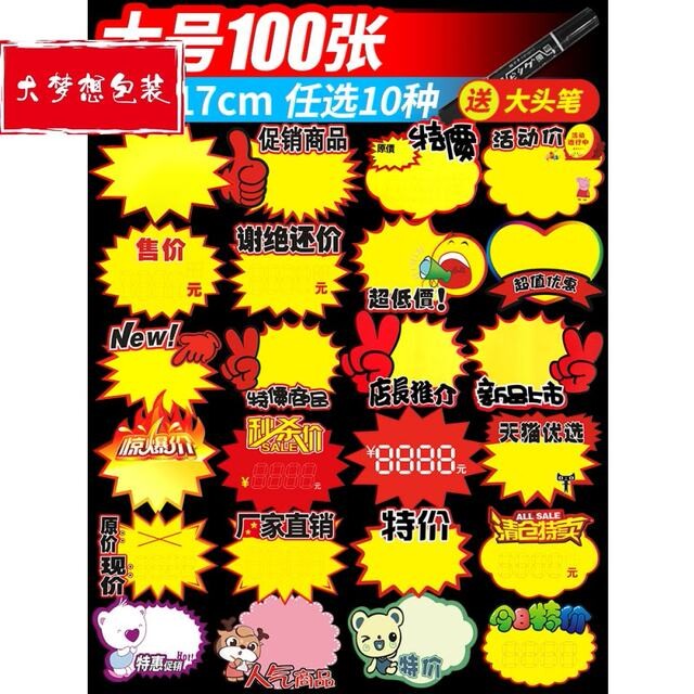 超市价格标签大号POP广告纸炸贴特价标牌商品标价签水果小牌子热门设计联盟服务商