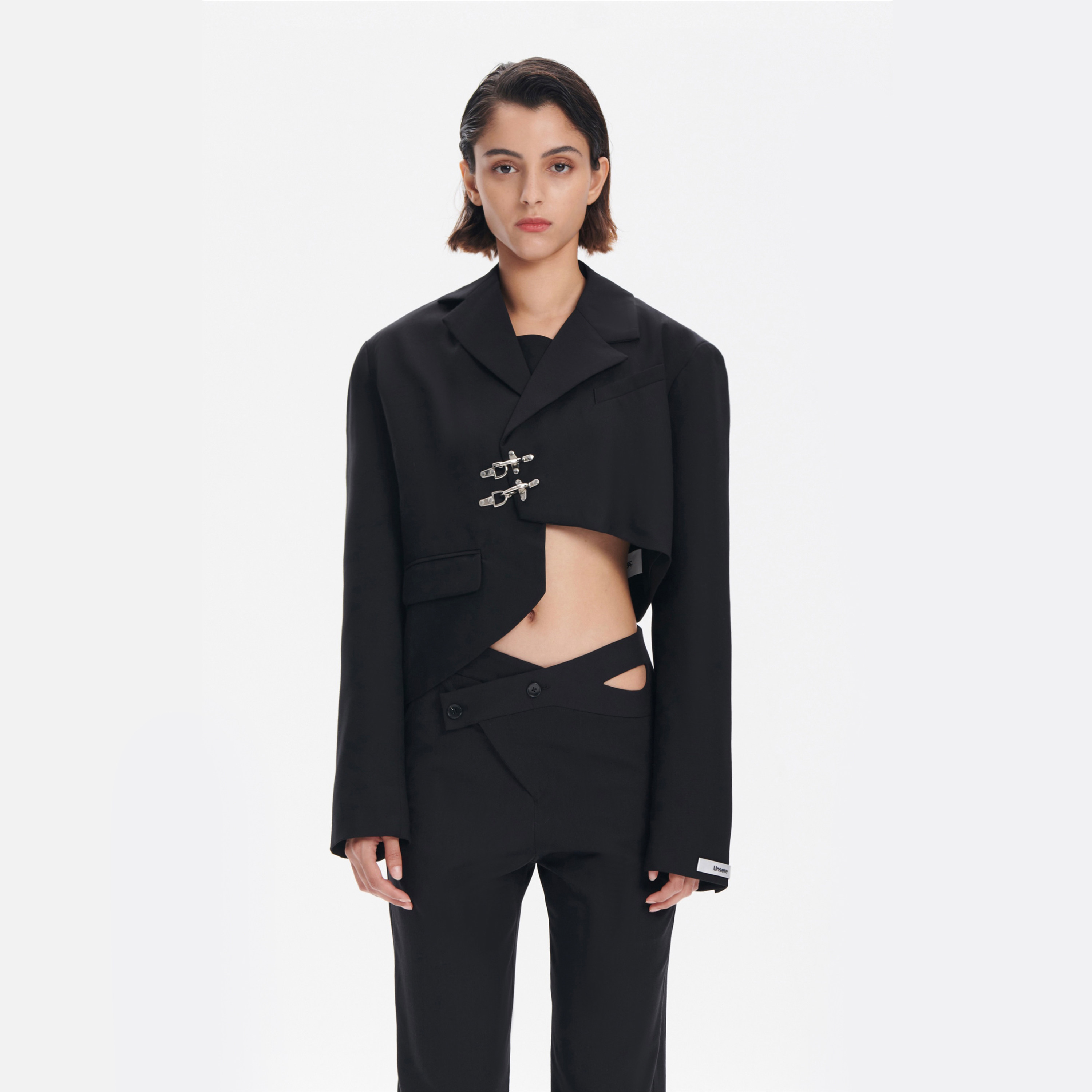 UNSERE原创设计春夏小众黑色西服金属按扣不规则短款小西装外套女热门设计联盟服务商