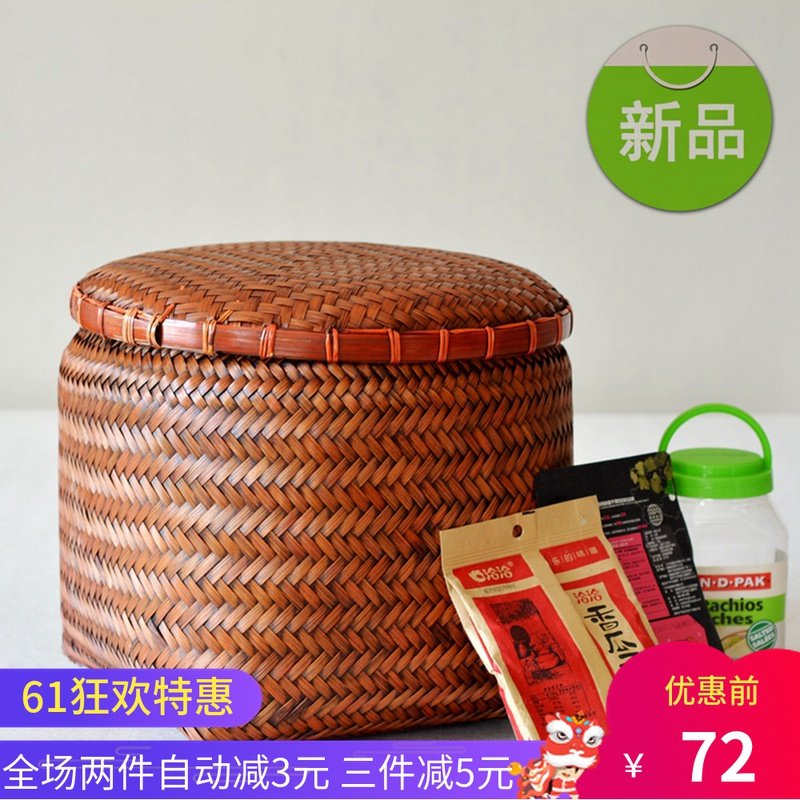 1道具手工竹筐圆形仿古复古篮筐竹编影视盖舞蹈筐盖子有竹编带收热门设计联盟服务商