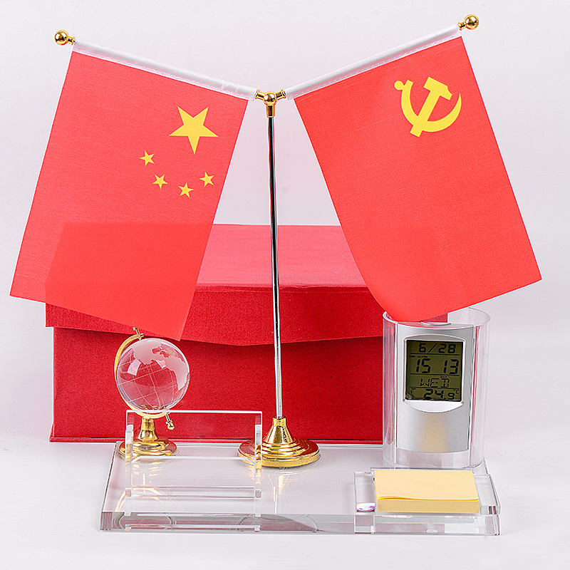水晶办公笔筒 电子万年历笔筒商务笔筒摆件地球仪摆件公司LOGO热门设计联盟服务商