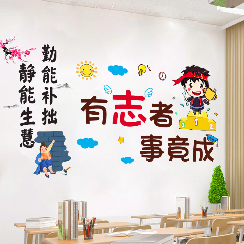 。学校教育培训机构文化墙布置教室班级背景墙装饰励志文字墙贴纸热门设计联盟服务商