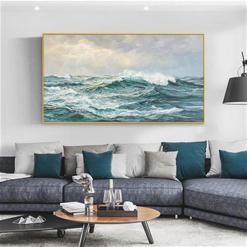 手绘纯油画横幅海上日出轻奢w挂画侘寂风客厅沙发背景墙装饰画走热门设计联盟服务商