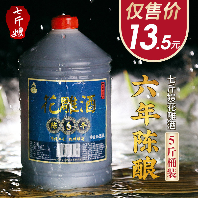 七斤嫂 绍兴产黄酒绍兴六年花雕酒加饭料酒2.5L 坛装分装壶 5斤桶热门设计联盟服务商