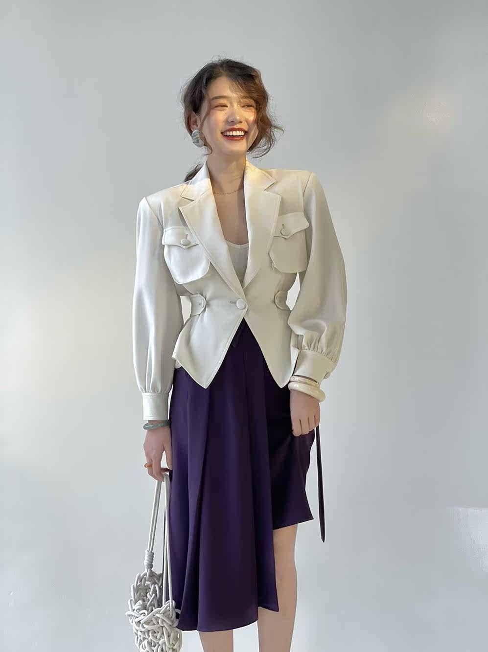 MXU小众设计感重工剪裁不规则半身裙logo刺绣高腰显瘦百搭百褶裙热门设计联盟服务商