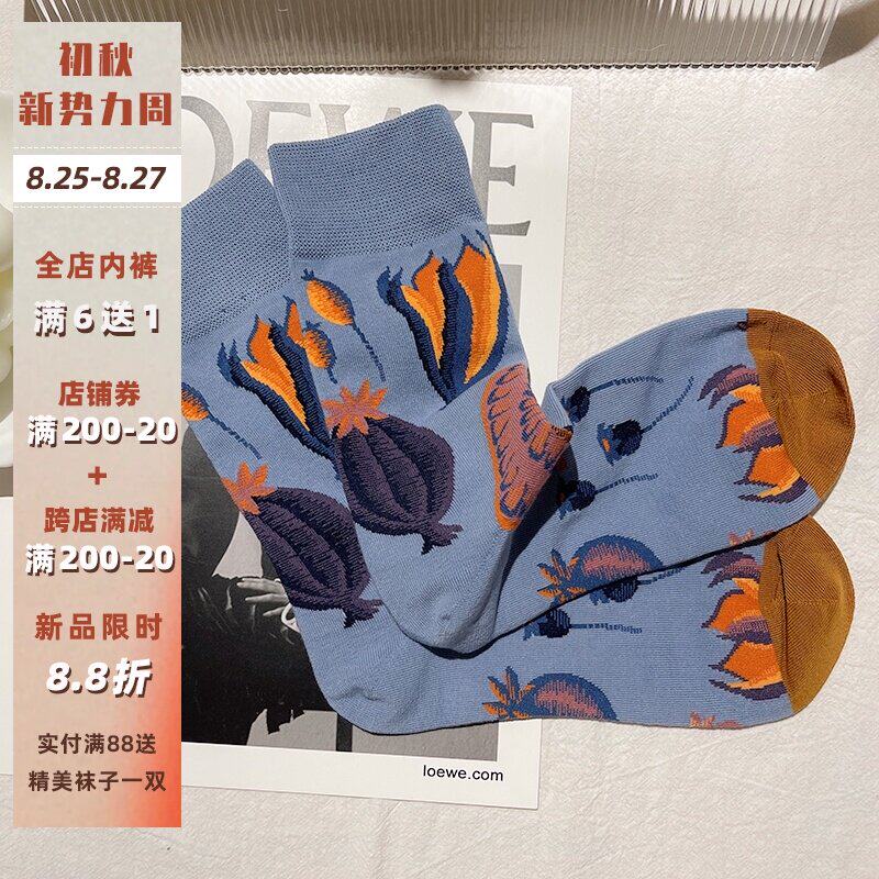 LH创意艺术yingsu花袜子女 ins潮日系中筒袜春秋季潮袜男无骨缝合热门设计联盟服务商
