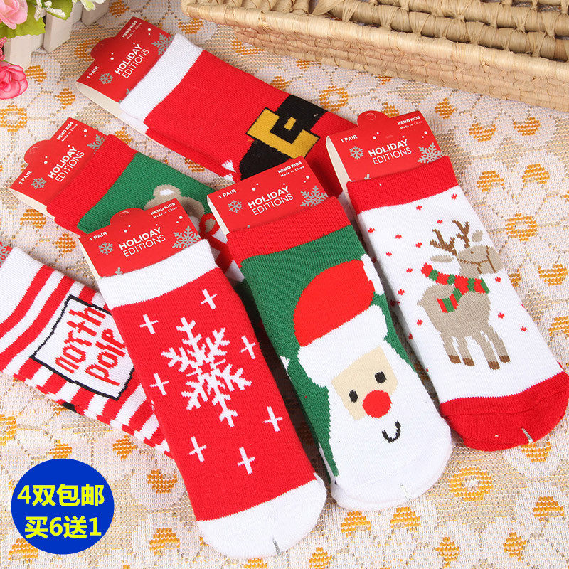儿童圣诞袜加厚毛圈冬季红色节日卡通保暖毛巾袜男女童宝宝中筒袜热门设计联盟服务商