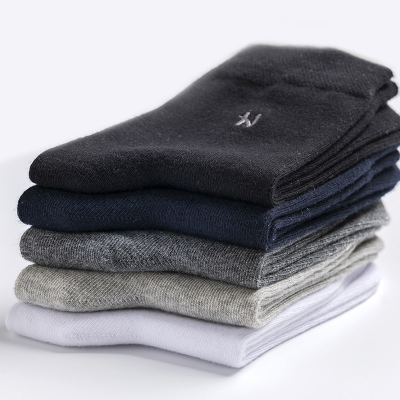 男袜子秋冬纯棉商务中筒袜子 吸汗防臭纯色加厚款男士全棉袜中厚热门设计联盟服务商