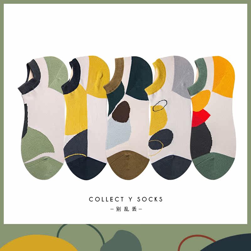 别乱丢抽象几何个性艺术款情侣袜子女短袜男浅口低帮春夏吸汗船袜热门设计联盟服务商