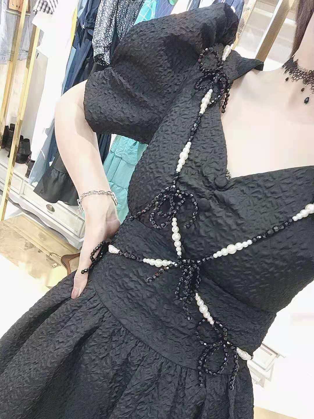 5.21上新 黑白拼接手工DIY珍珠装饰链裙YF52131热门设计联盟服务商
