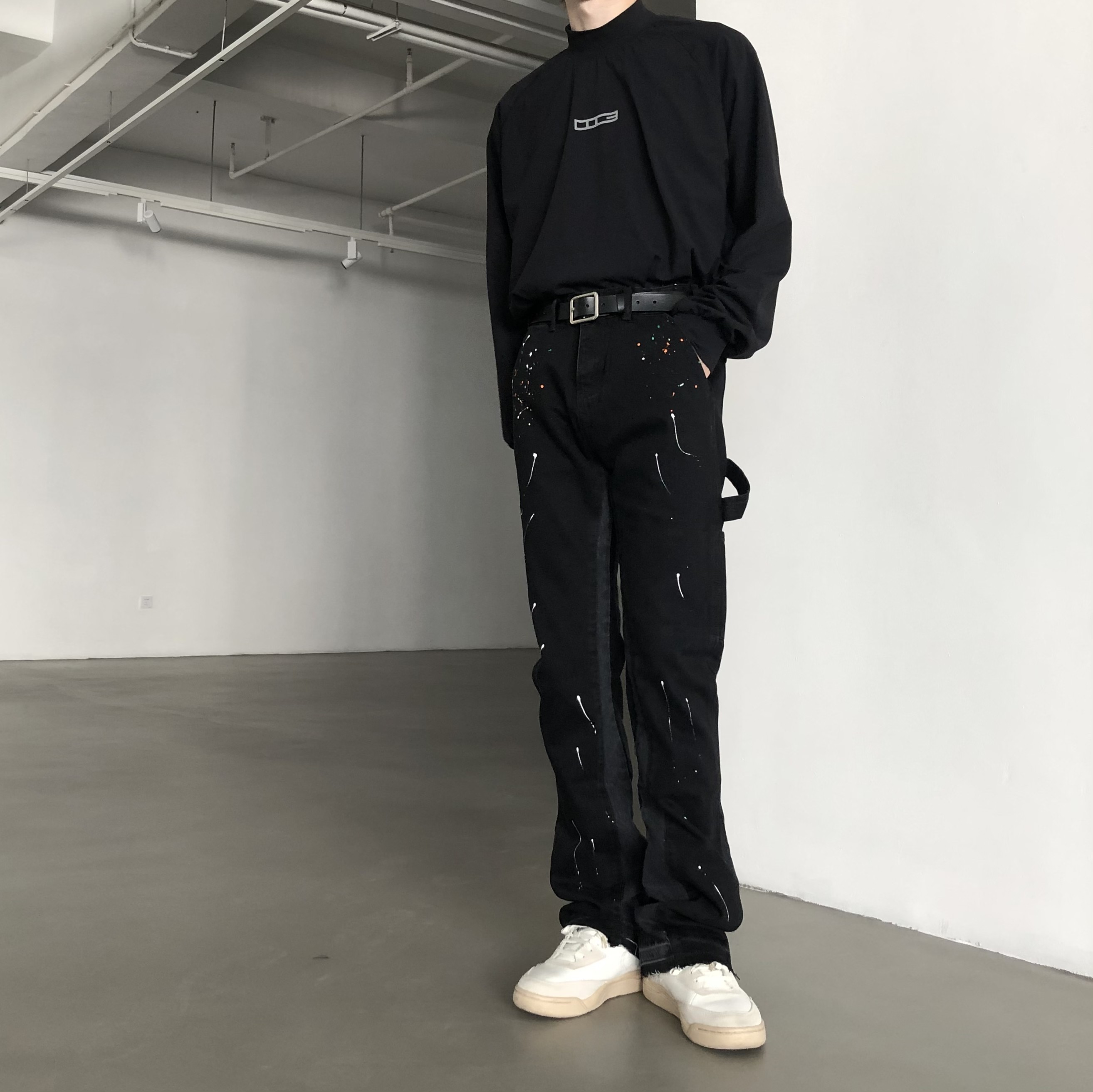 【NOT UGLY】 20FW 自主宽松休闲微喇泼墨设计拼接解构黑灰牛仔裤热门设计联盟服务商