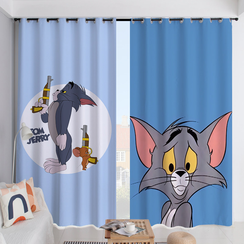 卡通动画猫和老鼠儿童房加厚遮光窗帘印图杰瑞书房窗户隔阳挂钩帘热门设计联盟服务商