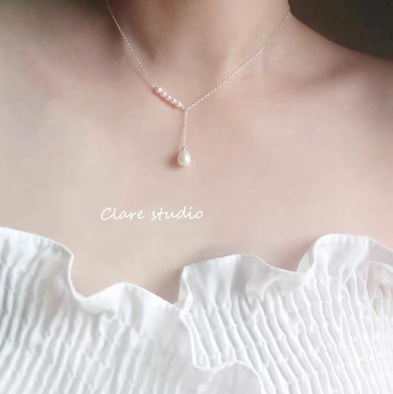 推荐~小幸运。纯银气质锁骨链 天然珍珠原创手作颈饰y型项链百搭