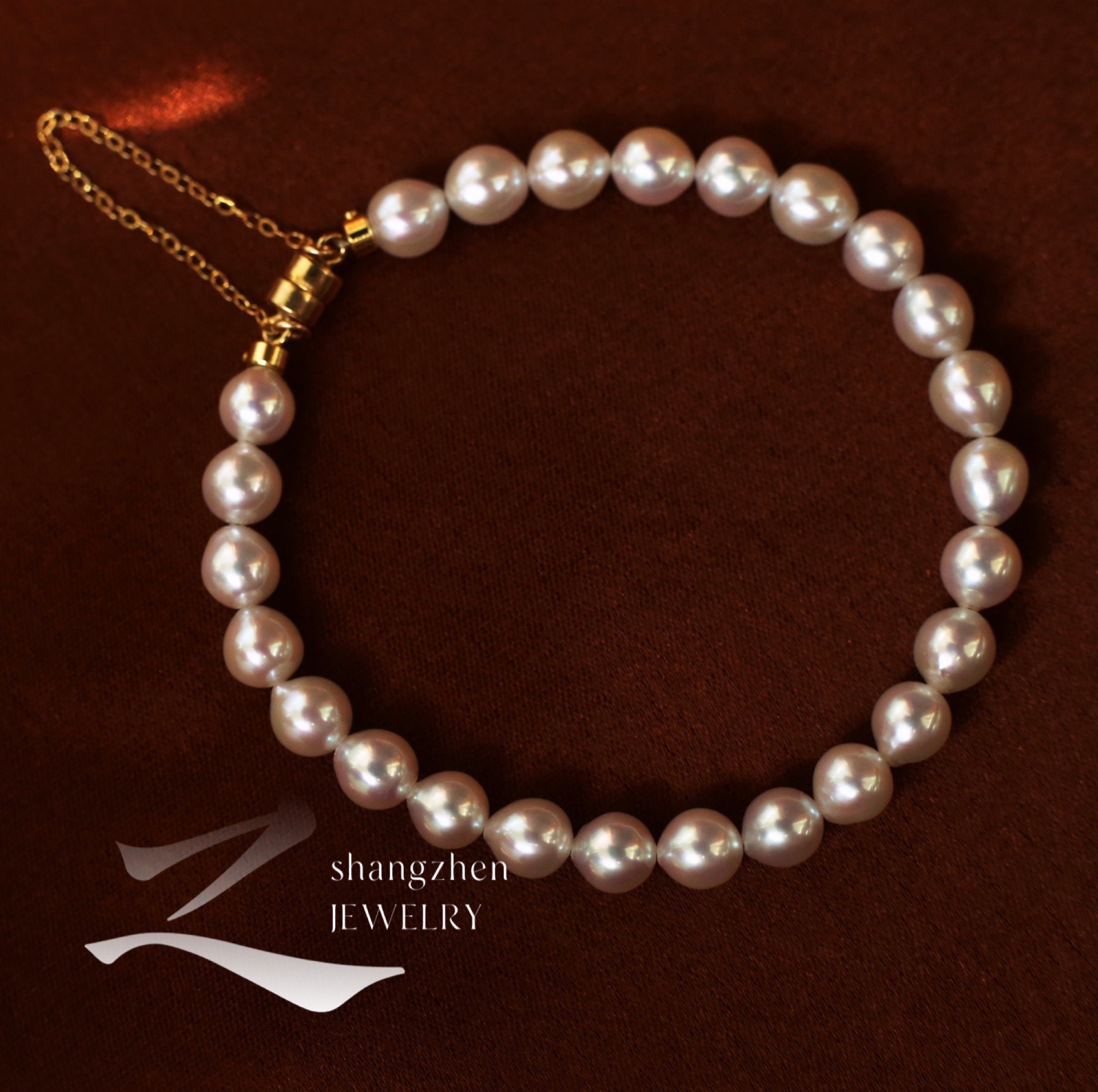 尚真珍宝朝露系列极光天然水滴形珍珠手链 ins小众设计七夕礼物热门设计联盟服务商