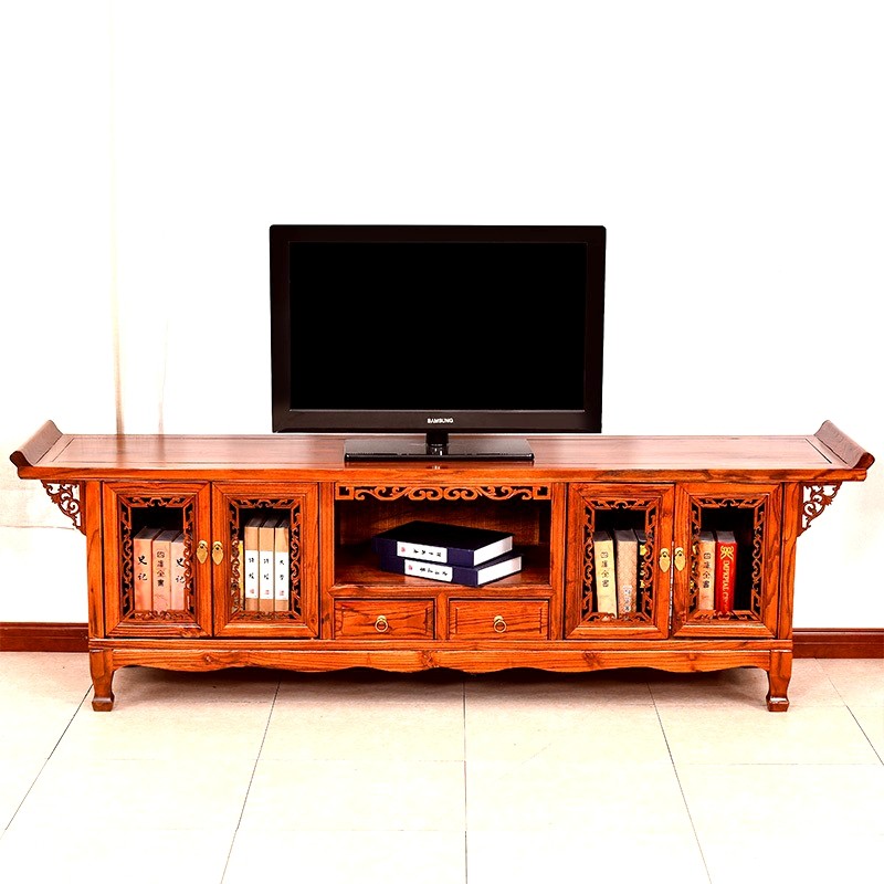 新中式实木南榆木四门两斗客厅电视柜组合整装电视机柜影视柜储物热门设计联盟服务商