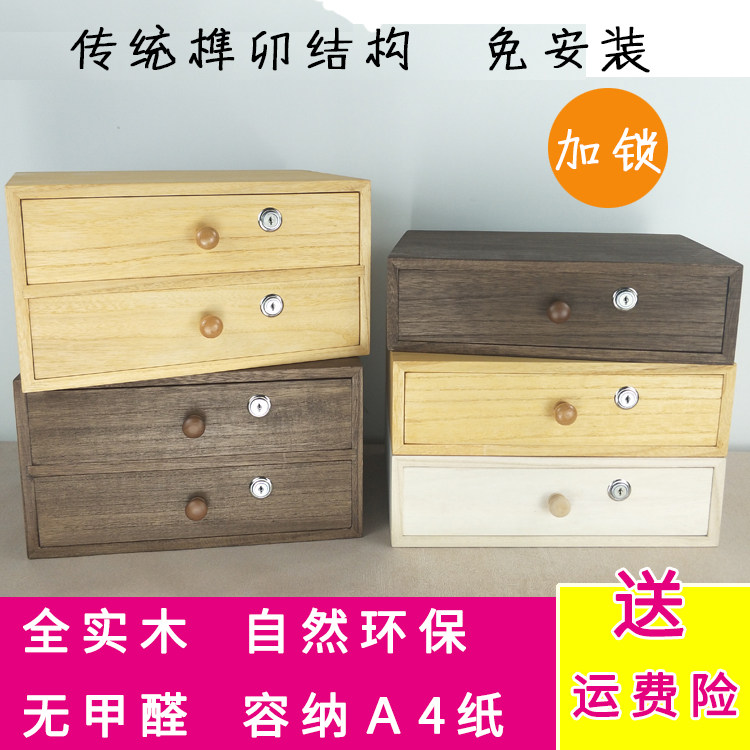 小型办公桌面实木质收纳盒液晶显示器增高架抽屉式带锁首饰储物柜热门设计联盟服务商