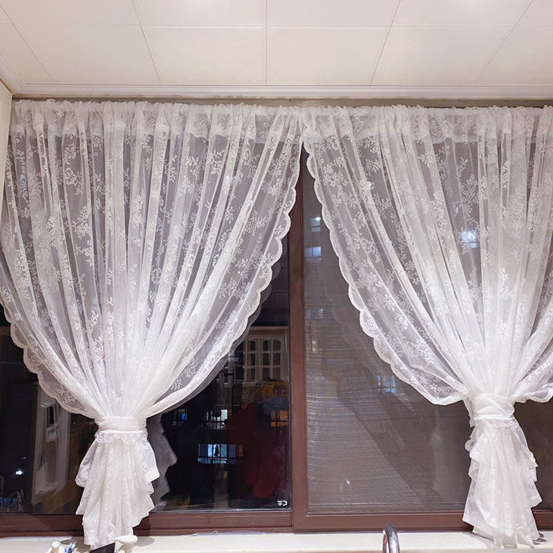 免打孔韩式白纱窗帘蕾丝布料魔术贴隔断装饰客厅飘窗白色纱帘窗纱热门设计联盟服务商