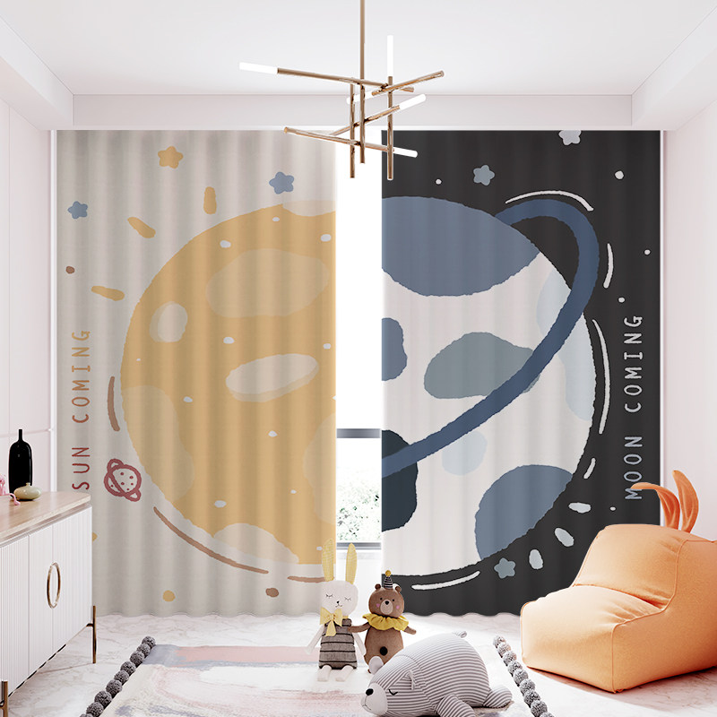 定制全遮光简约可爱球球窗帘动漫动画儿童潮款男生客厅装饰免打孔热门设计联盟服务商