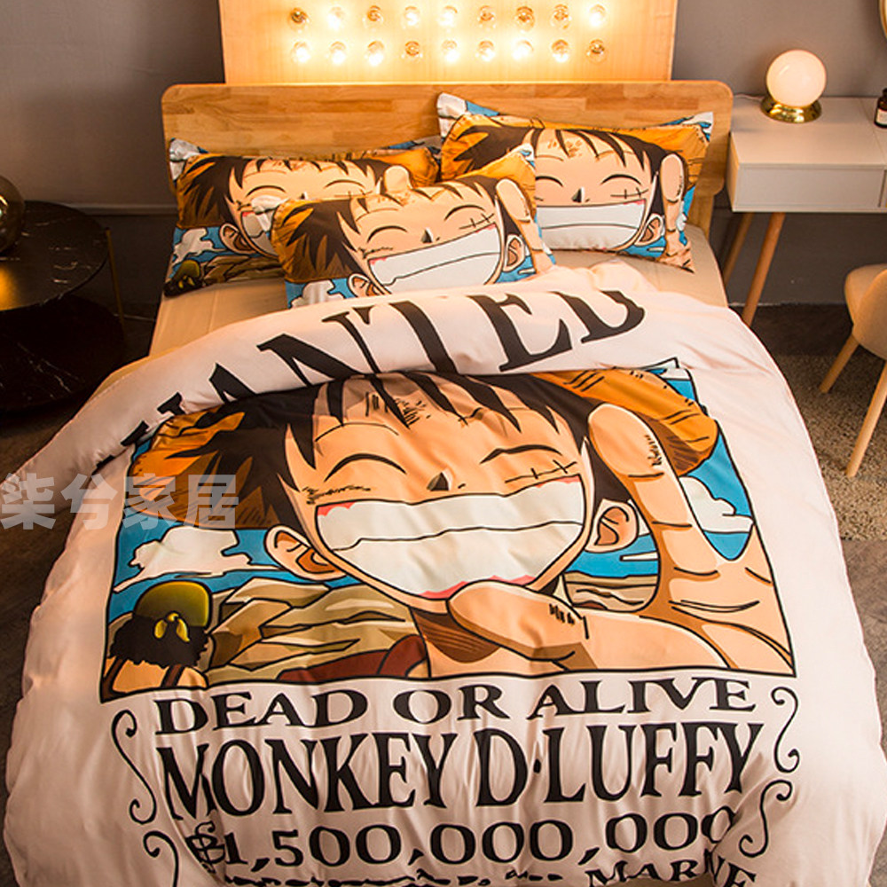 学生床上四件套海贼王动漫被套二次元床笠式床单1.8m宿舍被子路飞热门设计联盟服务商