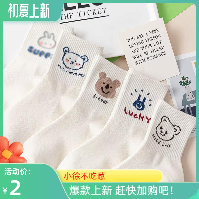 袜子女 中筒 棉 春夏薄款 动画卡通中筒 简约透气 防滑不掉跟抗菌热门设计联盟服务商
