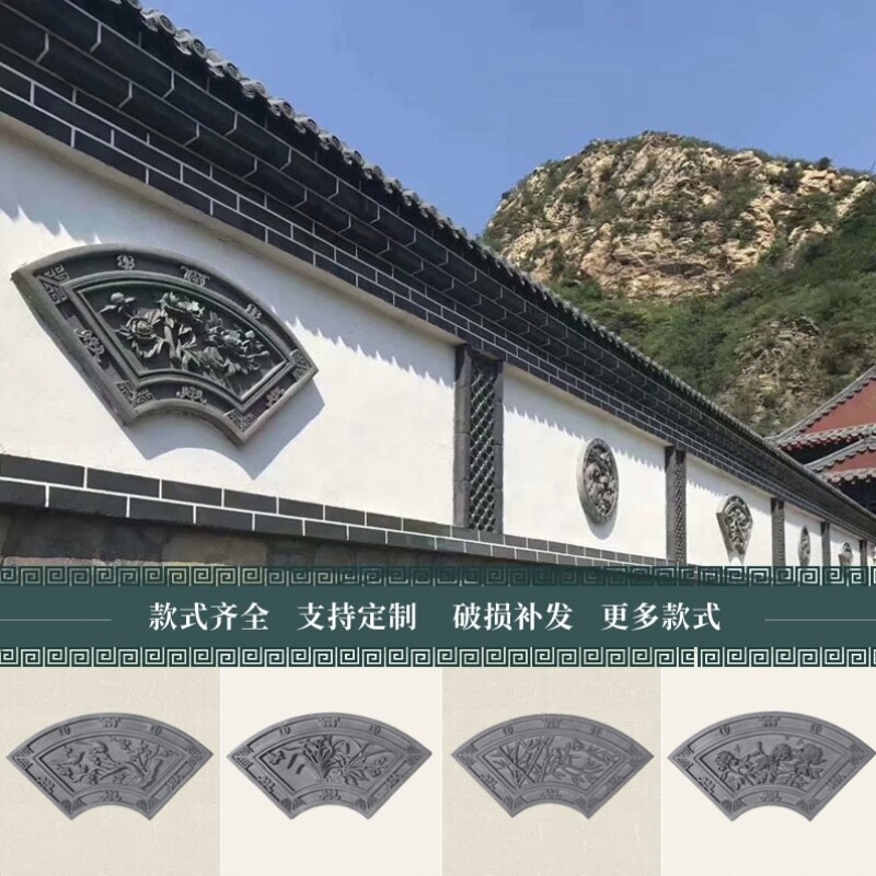 定制中式仿古梅兰竹菊扇形镂空透视砖雕室内室外古建围墙装饰挂件热门设计联盟服务商