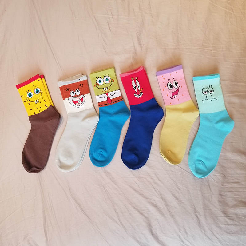 于袜袜2020春季新款中长筒袜 拼色百搭动画图案欧美潮流情侣袜女热门设计联盟服务商