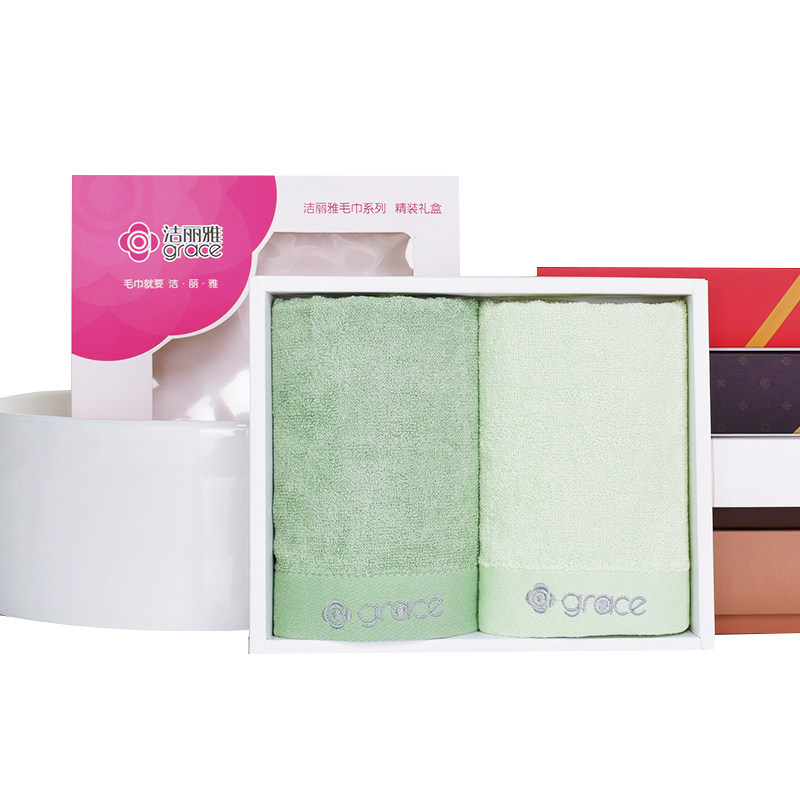 洁丽雅正品纯棉毛巾礼盒套装两条装含手提商务会议团购回礼品绣字热门设计联盟服务商