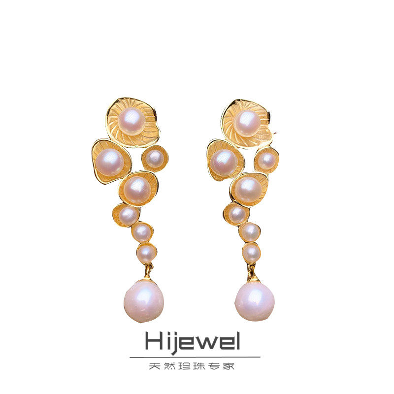 Hijewel设计感天然淡水珍珠耳环S925纯银耳钉精致小珍珠耳饰荷叶热门设计联盟服务商