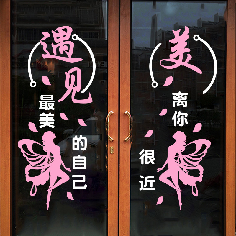美容院玻璃门贴纸创意养生会所美甲美睫店纹绣店墙面装饰海报墙贴热门设计联盟服务商