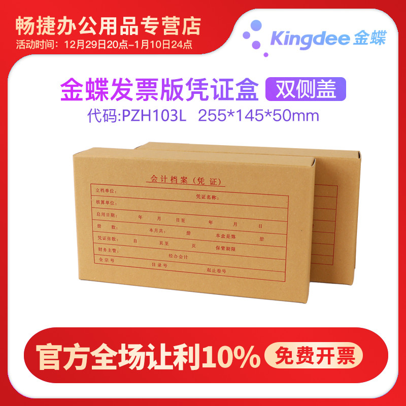 金蝶妙想凭证盒PZH103L 财务软件通用牛皮纸会计记账金蝶凭证增票版装订盒145*25550个办公用品精斗云KIS热门设计联盟服务商