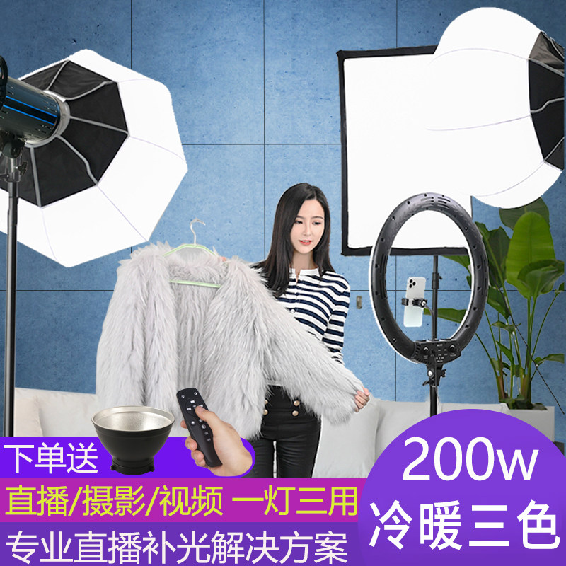 三色专业柔光球直播间补光灯200w摄影灯光主播专用美颜嫩肤拍照室内打光服装拍摄棚常亮球型影视太阳灯柔光箱热门设计联盟服务商