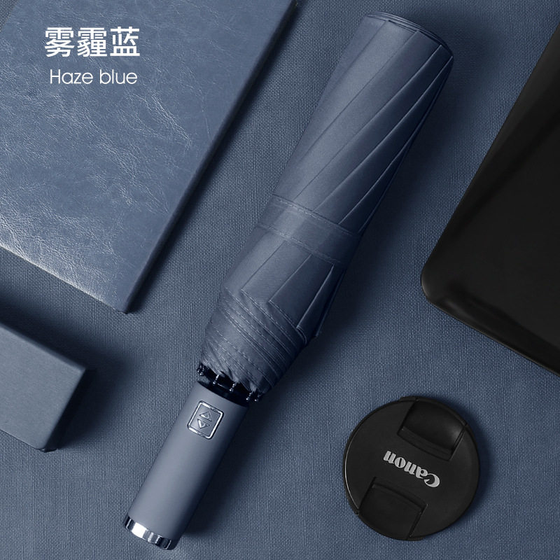 商务男士全自动三折雨伞大号抗风挡雨10骨晴雨伞黑胶防晒广告logo热门设计联盟服务商